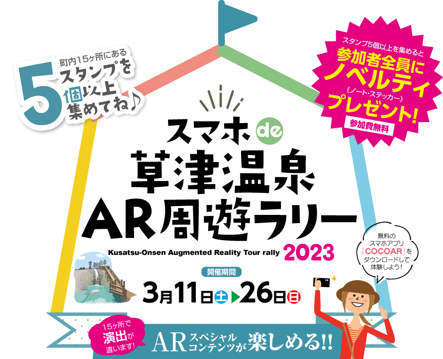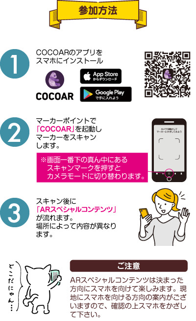 町内や近隣の主要観光施設などにおいてある、当イベントのチラシ自体がマーカーポイントです。試しに参加方法①のQRを読み込んでみてください!もれなくスタンプを1個GET出来ます!!