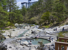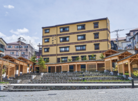 2014年に完成した、湯路広場周辺にマーカーポイントがあります。広場の周りを和風の回廊が囲み、棚田をイメージした広場では、ゆったりお休みされてる方も多く、この場所でイベントも開かれています。