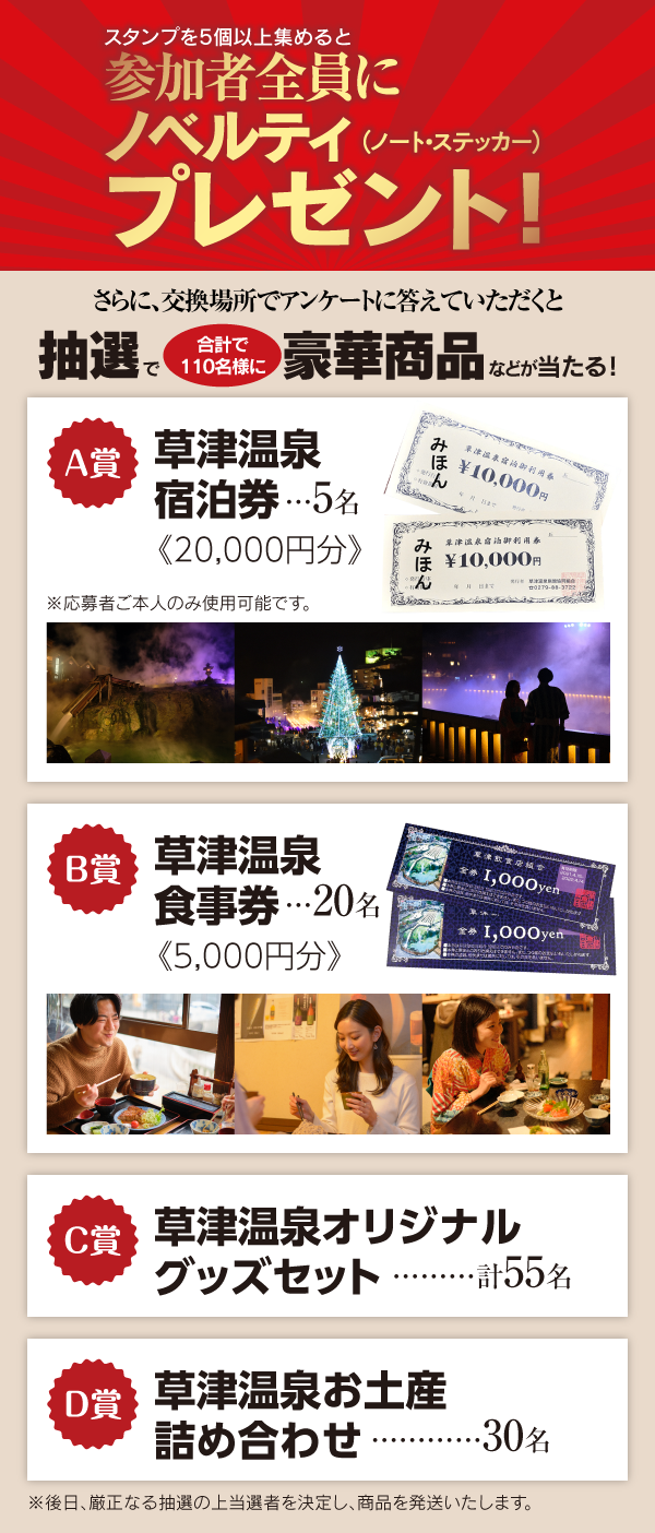 アンケートに答えると、抽選で豪華商品が合計110名様に当たります!